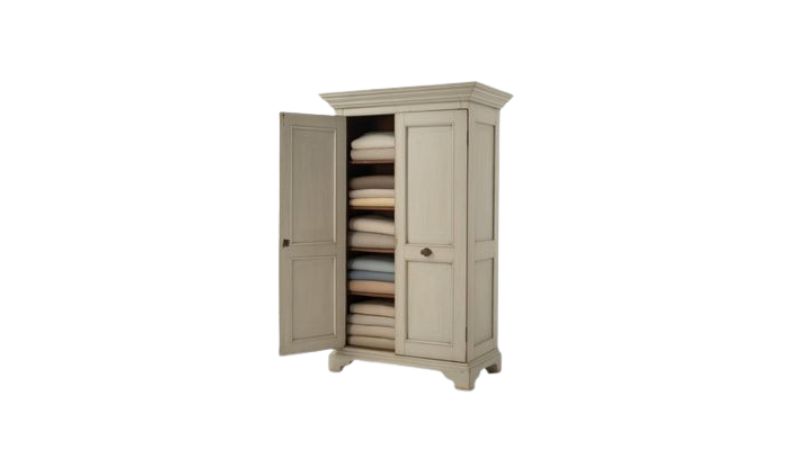 - Simple definition: A simple cabinet with shelves behind doors for household textiles or dry goods.