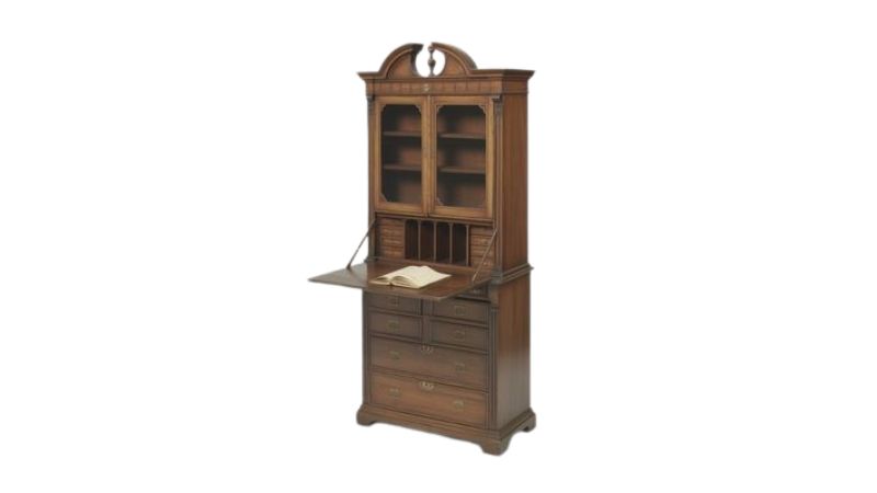 - Characteristics: Often combines bookcase or cupboards above and drawers below; ornate examples have inlay, veneering, or carved pediments.