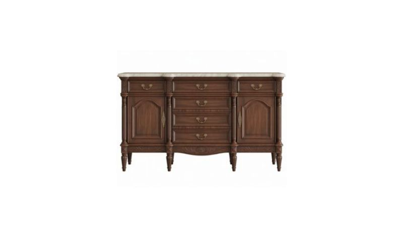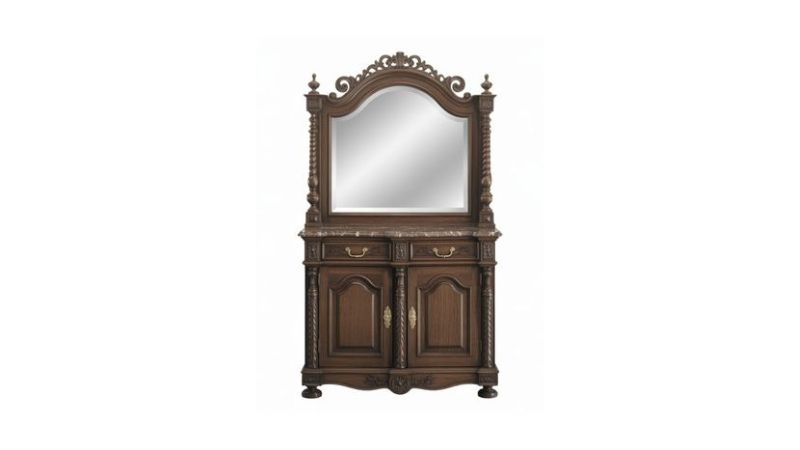 - Historical Story: The sideboard reached its zenith in Georgian England, where the ritual of the dinner party was a theatrical display of wealth. Master designer Thomas Sheraton published intricate plans for sideboards that often incorporated a “cellaret”—a locked drawer or compartment lined with lead to hold ice and chill wine—and deep wells for holding hot water to keep serving dishes warm. The mirrored back (or superstructure) wasn’t just decorative; it allowed the host to monitor the refilling of guests’ glasses without turning around, ensuring no want went unnoticed.