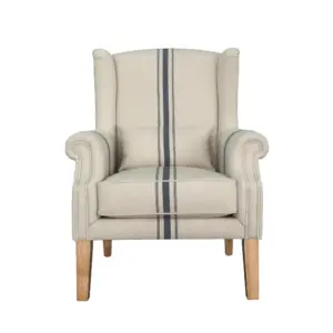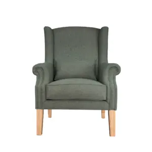 Classic Upholstery Wingback Wood Linen Fabric Lobby Chair