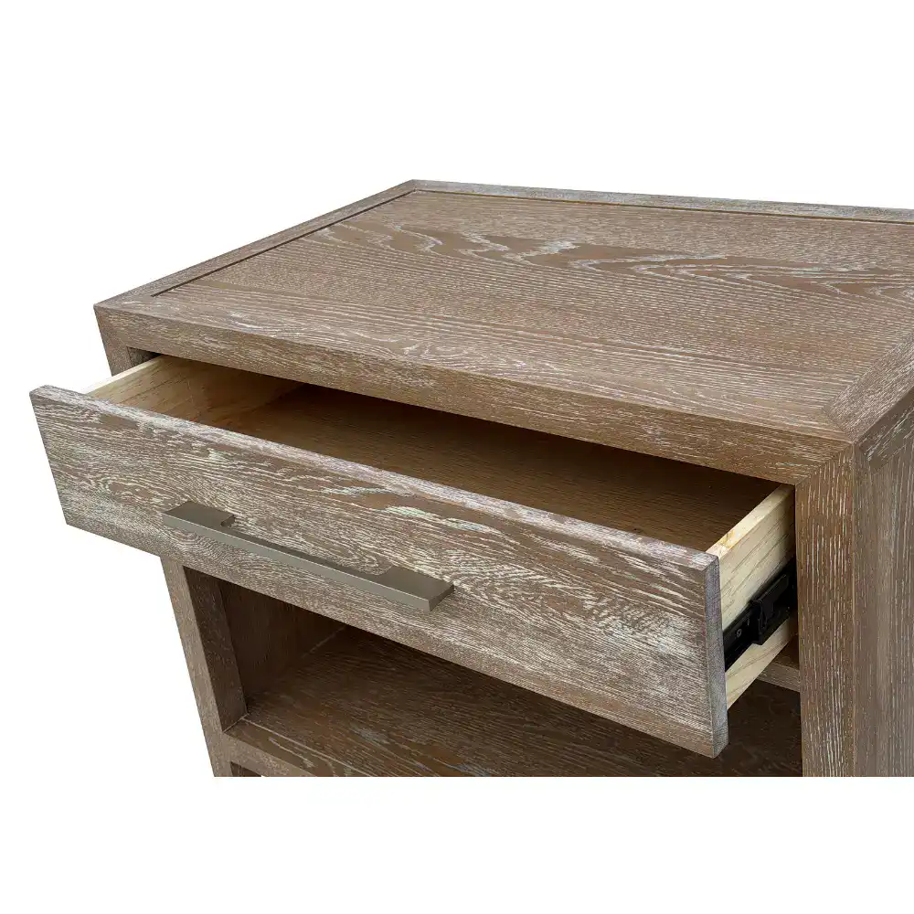 The Antique Wood Nightstand combines vintage French style with practical bedside storage, crafted to age beautifully while remaining functional.