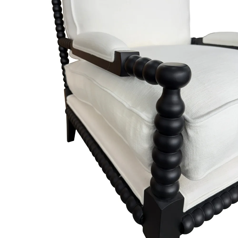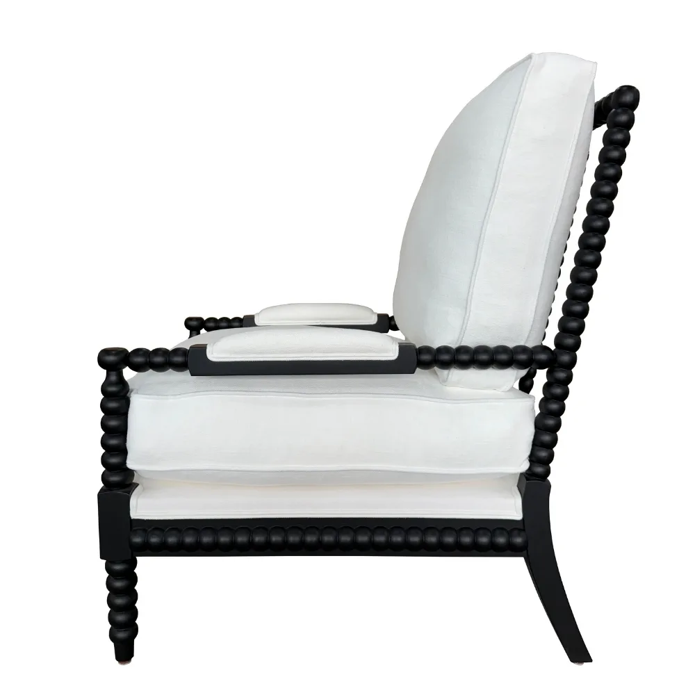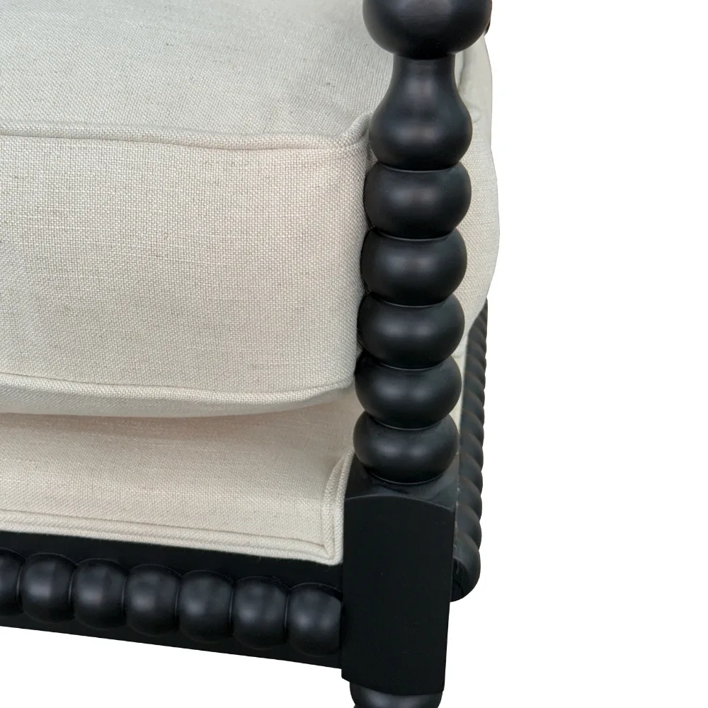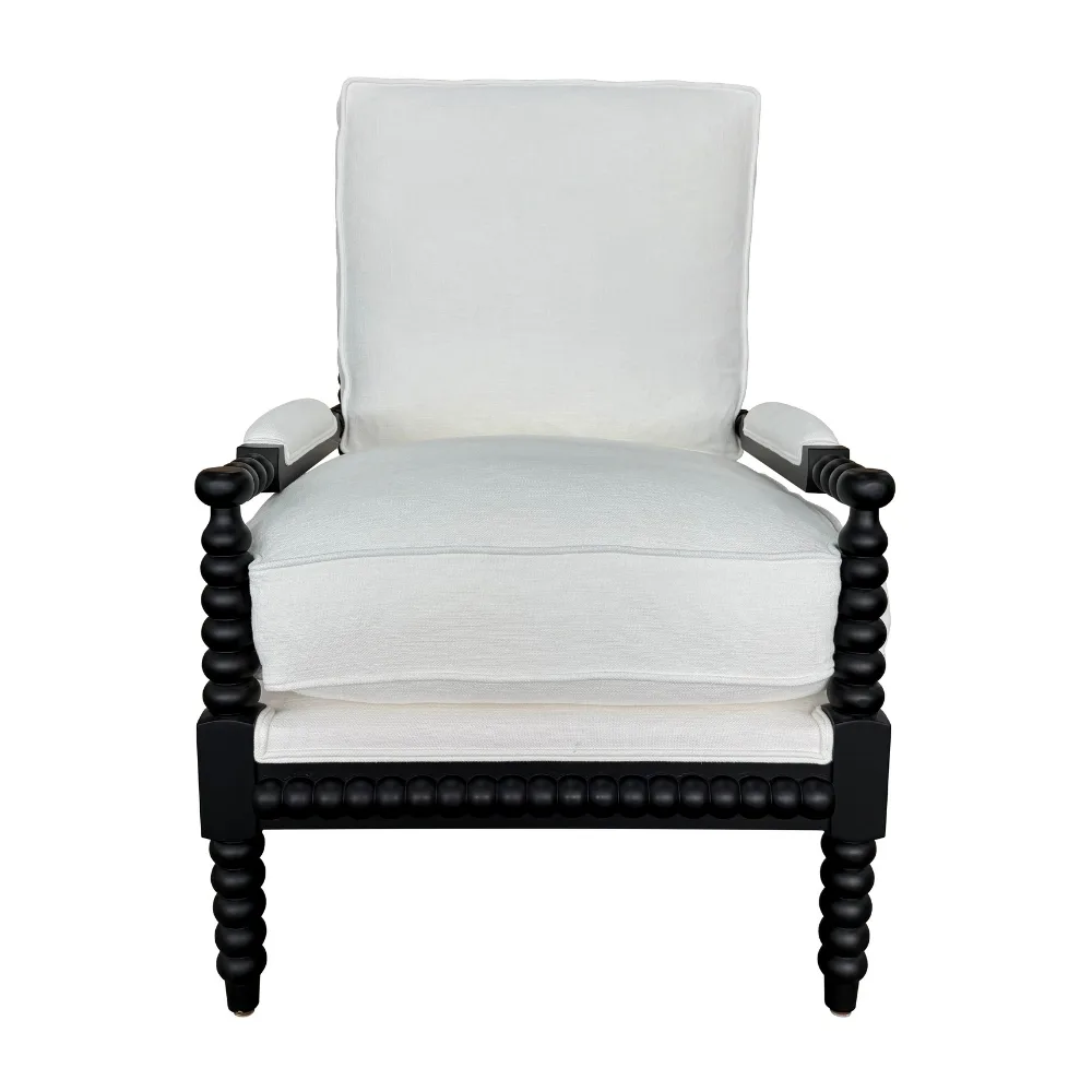 French Style White Birch Wood Spindle Accent Chair with Ottoman brings refined comfort and sculptural style to any living space. Designed for lounging, this Spindle Accent Chair pairs a generously padded seat and back cushion with a perfectly scaled ottoman for full‑body relaxation. The frame is crafted from solid birch wood, turned into distinctive spindle legs and arms that add architectural interest while ensuring long‑lasting stability. Neutral linen‑blend upholstery softens the bold silhouette and blends effortlessly with modern, coastal, or French‑provincial décor. A down‑blend, foam‑wrapped seat cushion delivers a plush yet supportive sit, while the loose back cushion invites hours of reading and conversation.