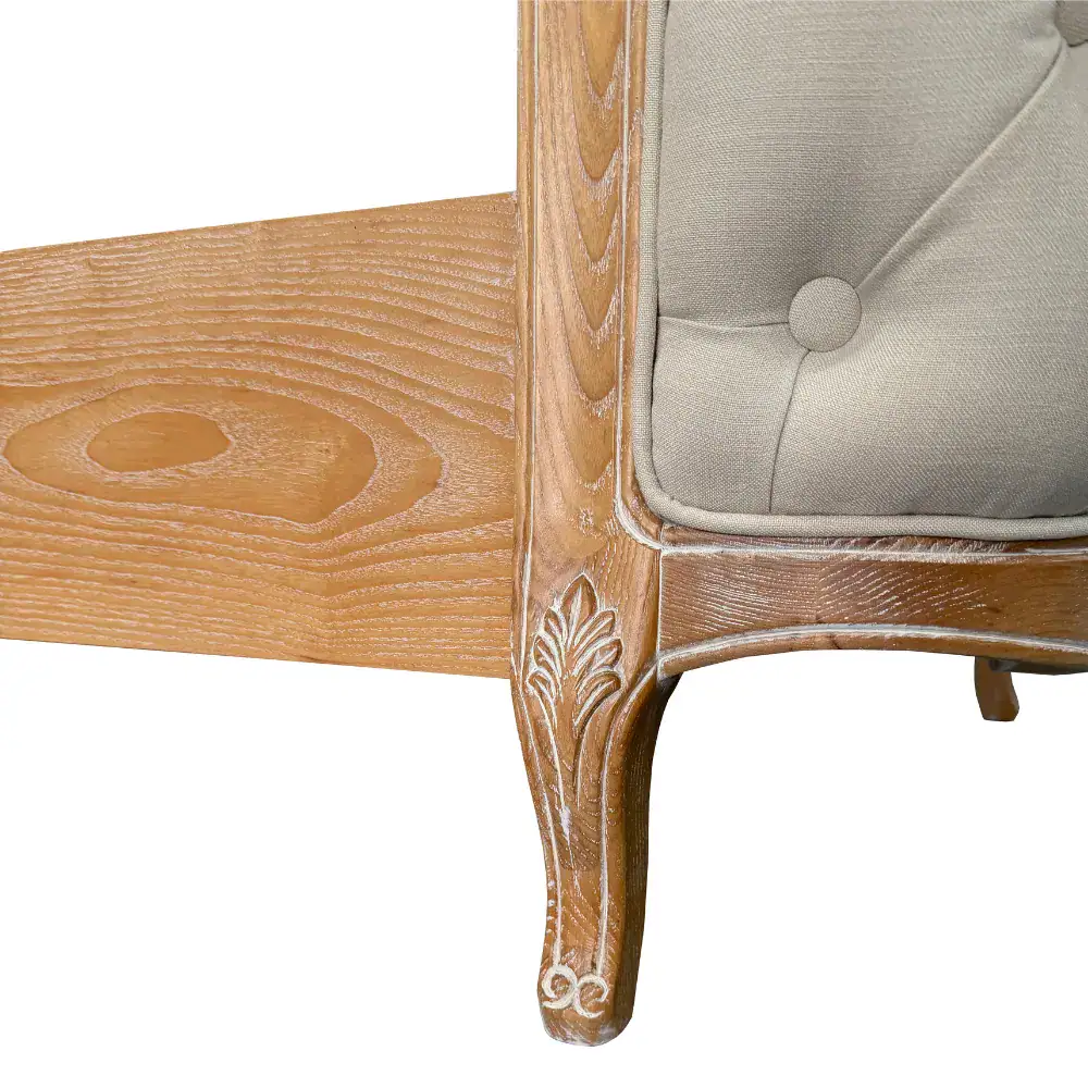 Elevate your bedroom’s aesthetic with our premium Classic Luxury Vintage Upholstered Bed Frame. Crafted with a robust solid ash wood frame, this exquisite Vintage Upholstered Bed Frame brings timeless French classic design straight to your home. It perfectly balances sophisticated elegance with everyday durability, ensuring long-lasting comfort and stability. The detailed button-tufted upholstery on the headboard not only enhances the vintage appeal but also offers a soft, luxurious feel for a restful night’s sleep.