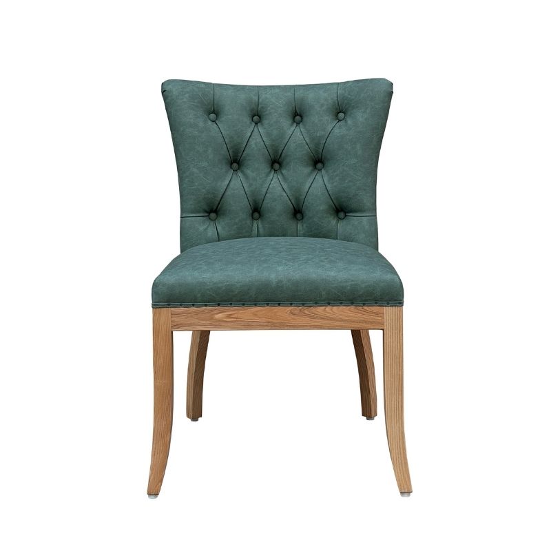 Luksuzni jedilni stol iz pepelovega lesa v francoskem slogu iz umetnega jekla v temno zelenem slogu